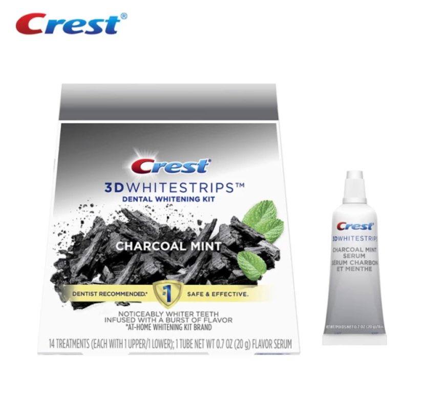 1. لصقات كرست Crest™ 3D White Charcoal Mint لتبييض الاسنان بالفحم والنعناع: